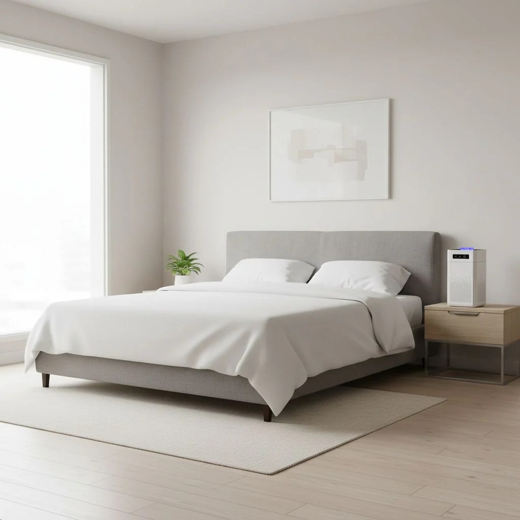 •  Ultra-Quiet Sleep Mode: Designed for light sleepers. The purifier runs silently in the background (Sleep Mode), ensuring clean air all night without the noise.